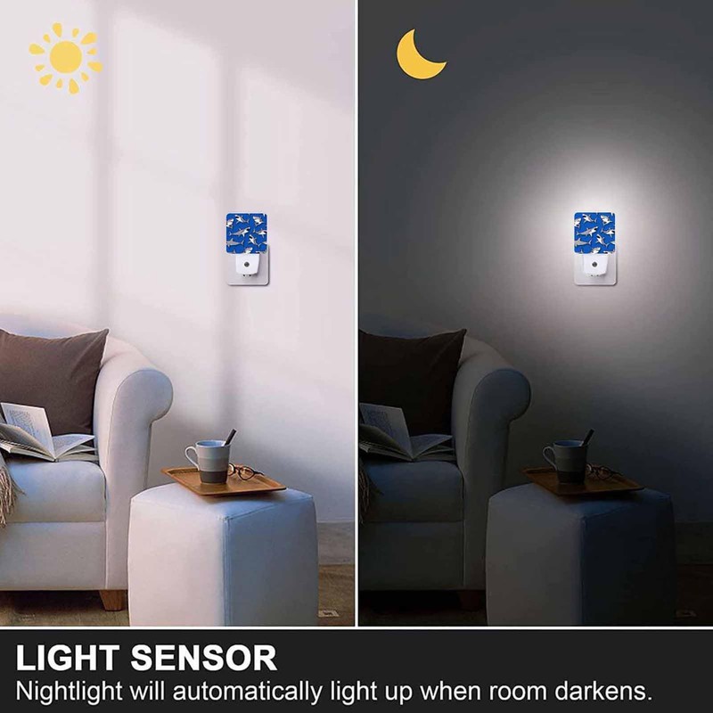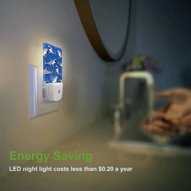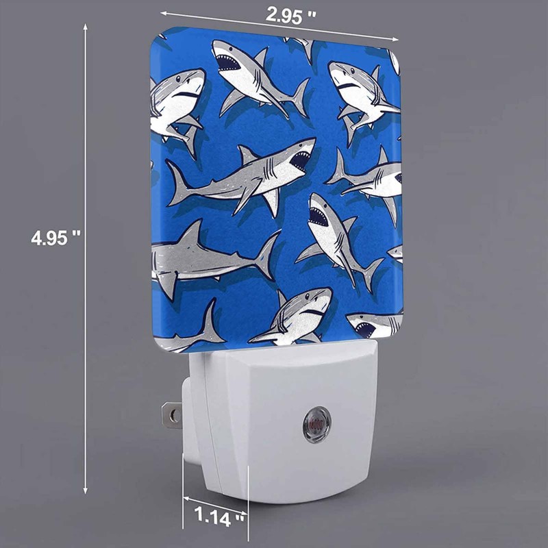 Chrobak LED Night Light,Grey Shark Elements Pattern LED Night Light Plug into Wall with Dusk to Dawn Light Sensor White Energy Efficient Nightlight for Bedroom Bathroom Hallway Living Room Kitchen