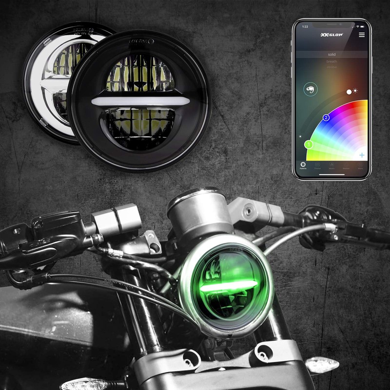 CHROME 5.75" RGB LED Harley Headlight XKchrome Bluetooth App Controlled Kit w/Color Changing DRL Feature