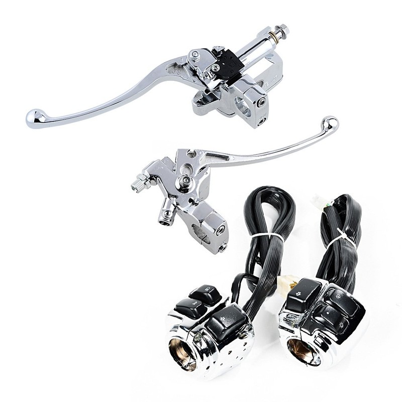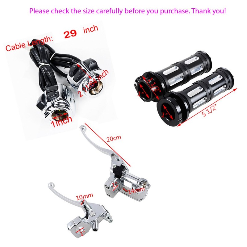 - Package includes: 2X Handlebar Headlight Horn Turn Signal Light Switch with harness + 1X 1 inch (eft Clutch Lever + 1X 1 inch (ight Hydraulic Brake Master Cylinder+2X Handlebar grips with throttle and assistor control