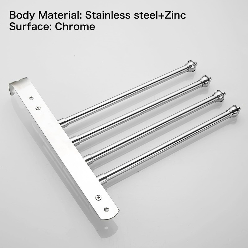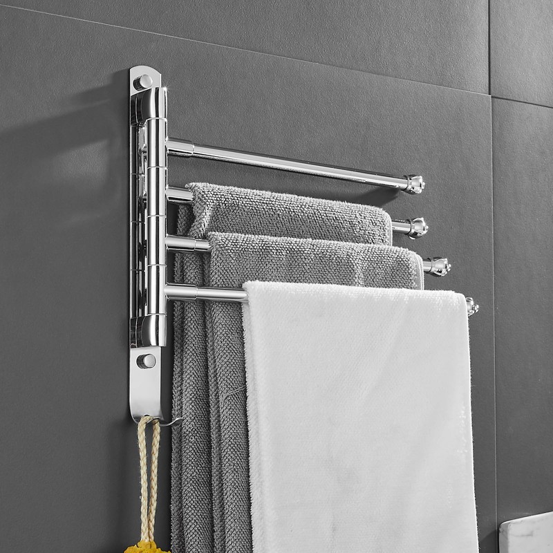 Chrome Rotating Towel Rack Stainless Steel Adjustable Towel Rack Bathroom Towel Rack 12 * 1.5 * 11.7inch Suitable for Bathroom, Bedroom, Balcony Removable Towel bar (electroplated, Four Poles)