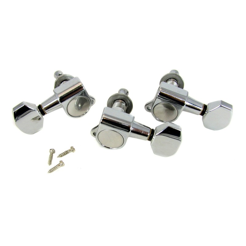 Chrome Sealed-Gear Tuners for 3-String Cigar Box Guitars - 2 Right /1 Left