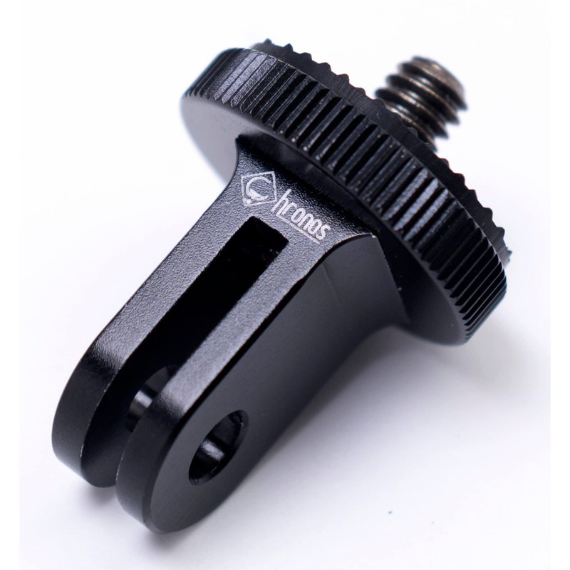 Chronos Camera Mount Adapter for GoPro Ecosystem - ¼-20 Conversion Adapter Description: Tripod Adapter Mount and Thumbscrew CNC cut from high quality Aluminum giving additional strength to your set up on your next adventure. Rubber locking ring ensures mount is securely fastened to the bottom of camera and keeps it from coming loose. Camera mount conversion adapter allows you to mount almost any camera to any GoPro / DJI Osmo Action cameras mount ecosystem accessory. Uniquely designed thumbscrew (glove friendly/tool free) allows you to tighten the thumbscrew to ensure your camera never changes from its desired position. Compatible with: All GoPro Cameras: GoPro Max, GoPro Hero 10, Go Pro Hero 9, 8, 7, 6, 5, 4, and DJI Osmo Action Cameras Includes: 1 X Black Aluminum Tripod Adapter 1 X Black Aluminum Thumbscrew Warranty Policy: One year warranty for every Purchase from Chronos Gear, 30 days money back
