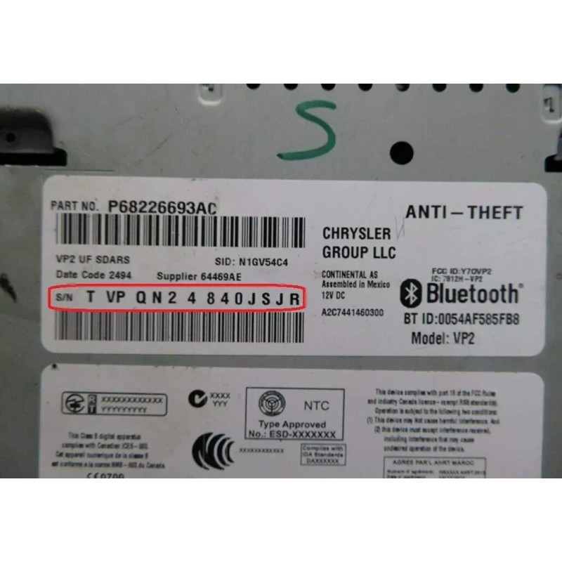 CHRYSLER  JEEP RAM DODGE RADIO UNLOCK CODE T00AM T00  T**QN SERIALS