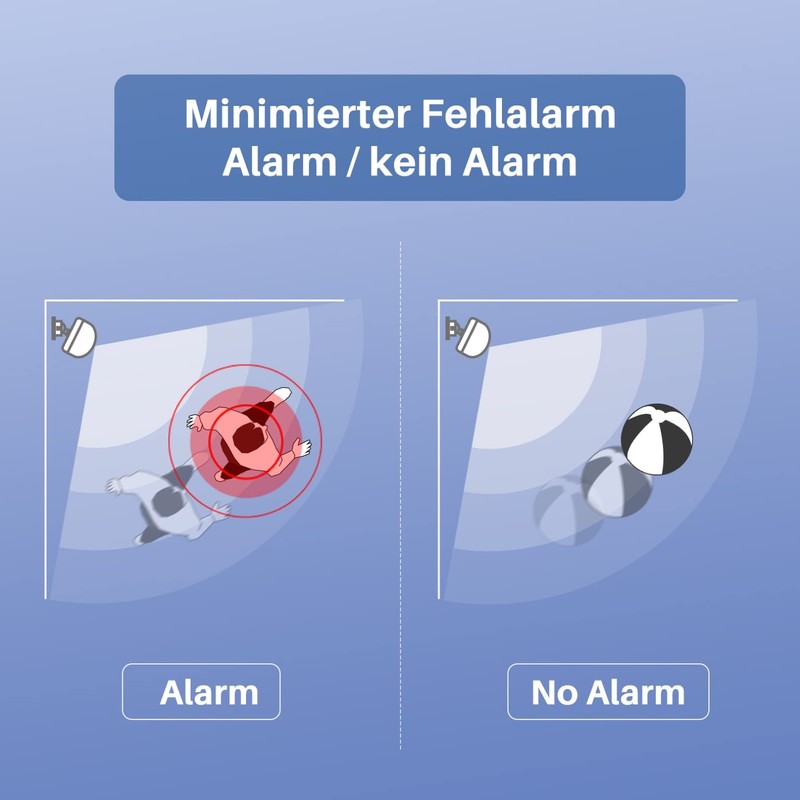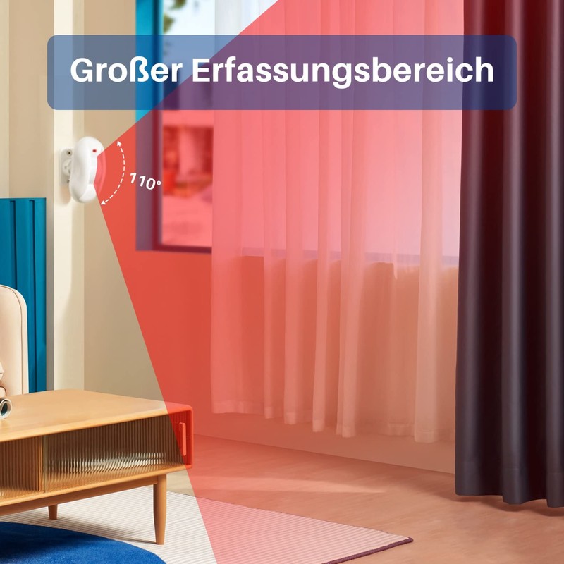 • Reliable coverage: the motion sensor detects the infrared spectrum of the human body in a range of 5 m (horizontal) and 15° (vertical). It forms a "narrow beam curtain" in this area.