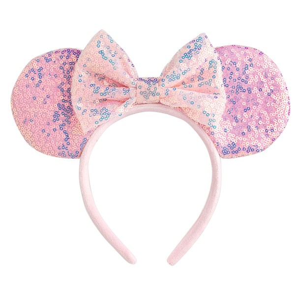 CHuangQi Mouse Ears Headband with Bow, Double-sided Sequins, Glitter Hair Band for Birthday Party, Holiday Dresses & Cosplay