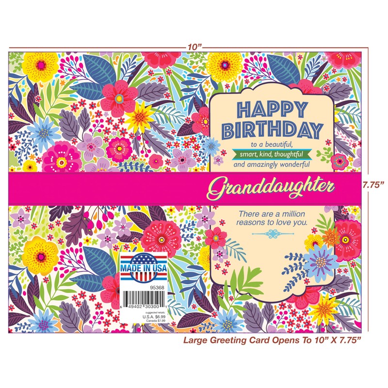 - This perfect birthday card for granddaughter is made with top-quality, extra high gloss paper for richer, more vibrant and brighter colors. Full color throughout the interior and back as well. Perfect sentiment. The difference is immediately obvious! Beautiful!