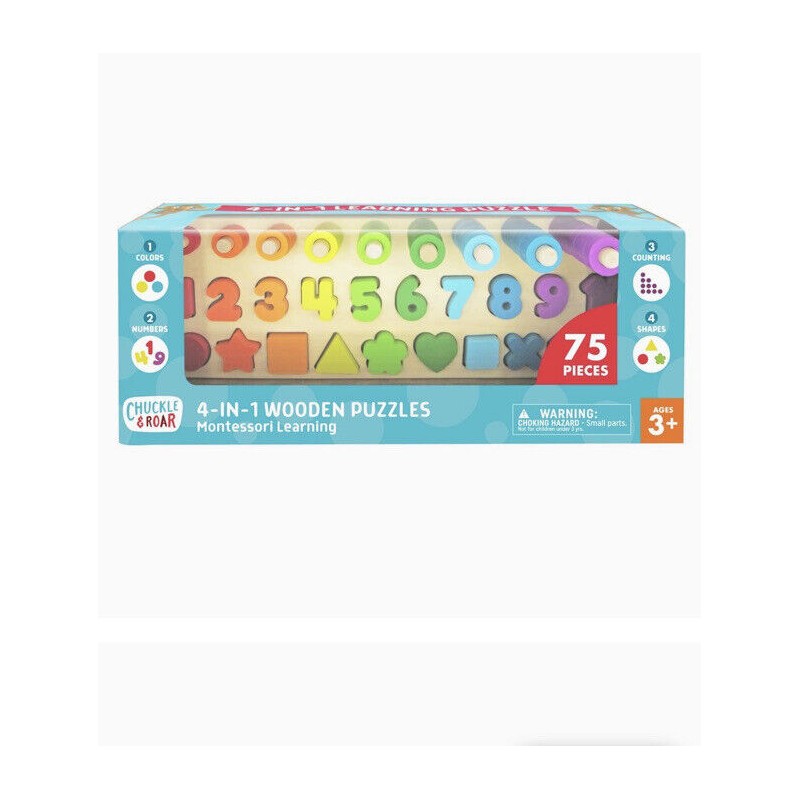 Chuckle & Roar 4 In 1 Wooden Puzzles Montessori Learning 75 Pc NIB!.