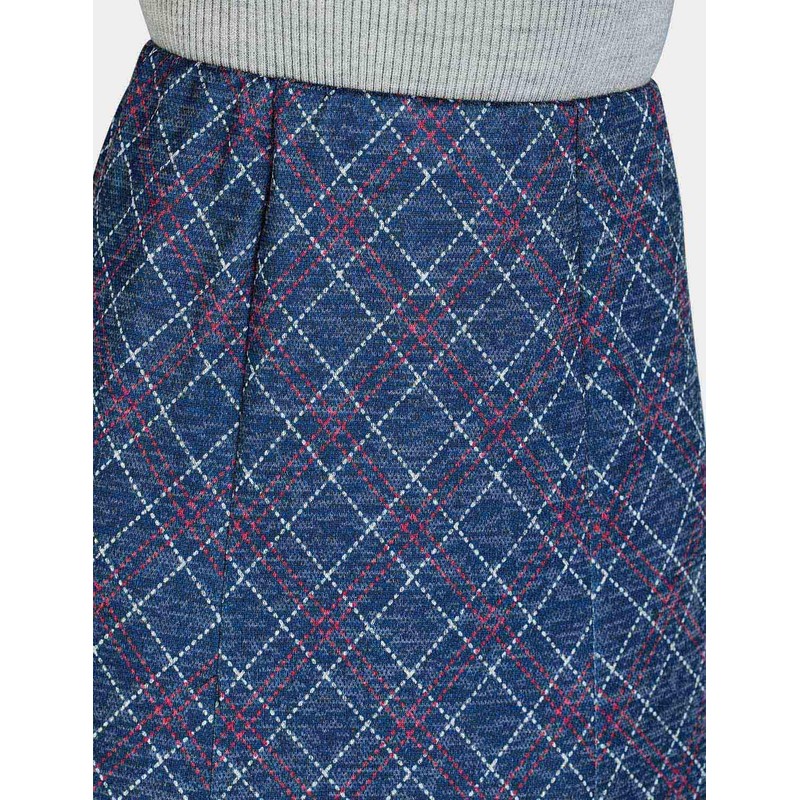 Chums Ladies 6 Panel Diamond Check Skirt Elasticated Waist, Check Print with Adjustable Length Navy Marl 12