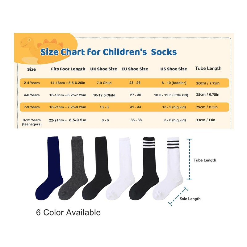 - 【Soft Breathable Material】These knee high socks for both boys and girls are made of soft combed cotton and elastic spandex. It is available from toddler little kids 3T to big kids 15 years old. These high quality socks are super soft ,breathable and moisture-wicking with extra durability,wearable and keeping shape wash after wash!