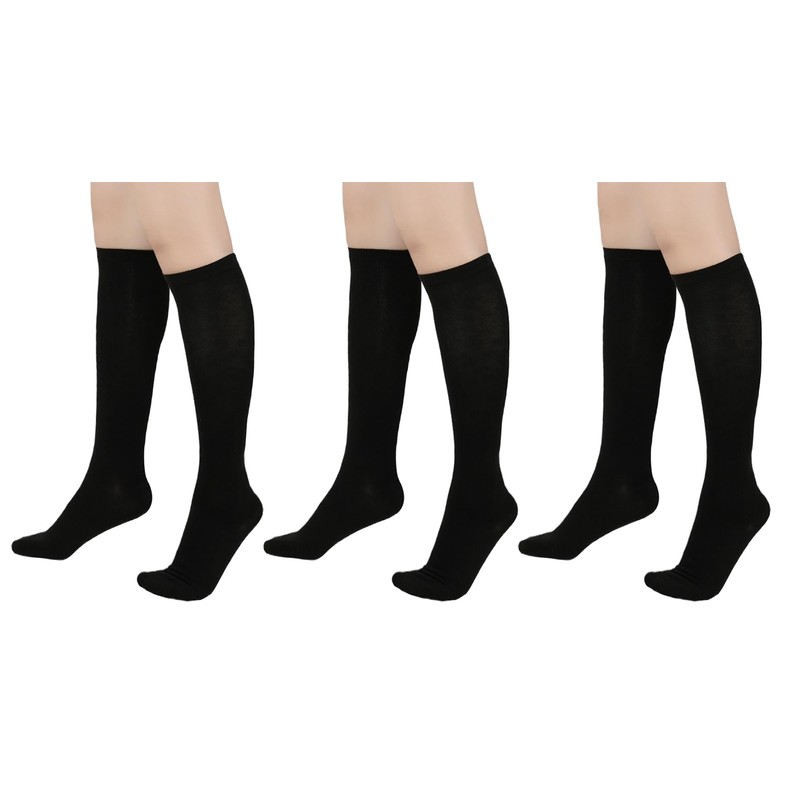 CHUNG Girls Knee High Socks Boys Kids Toddlers Unisex Cotton School Uniform Dress Sports Athletic Soccer Seamless Toe,3Blk,M,7-9Y