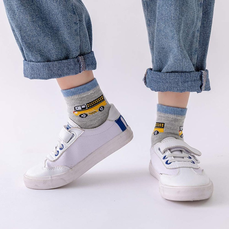 CHUNG Little Big Boys Cotton Socks Calf Crew Casual Dino Pattern 2020 Autumn Winter School Daily (4-6 Years, Car)