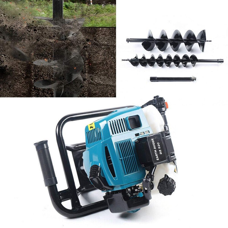 CHUNILLE 2-Stroke Hole Digger, Post Hole Digger with 4 in and 8 in Drill Bits Single Cylinder Digging Machine 8500rpm Gas Powered Earth Auger Borer Machine Blue