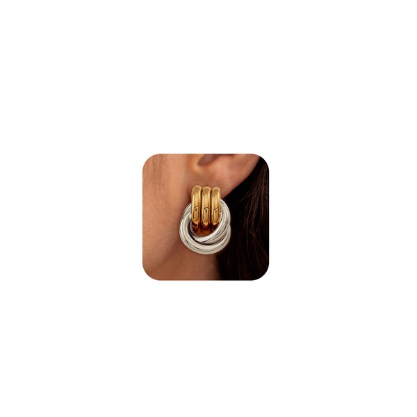 Chunky Gold Knot Earrings 14k Gold Plated Statement Earrings for Women Trendy Triple Geometric Dangle Earrings Lightweight Chunky Drop Earrings Jewelry Gifts