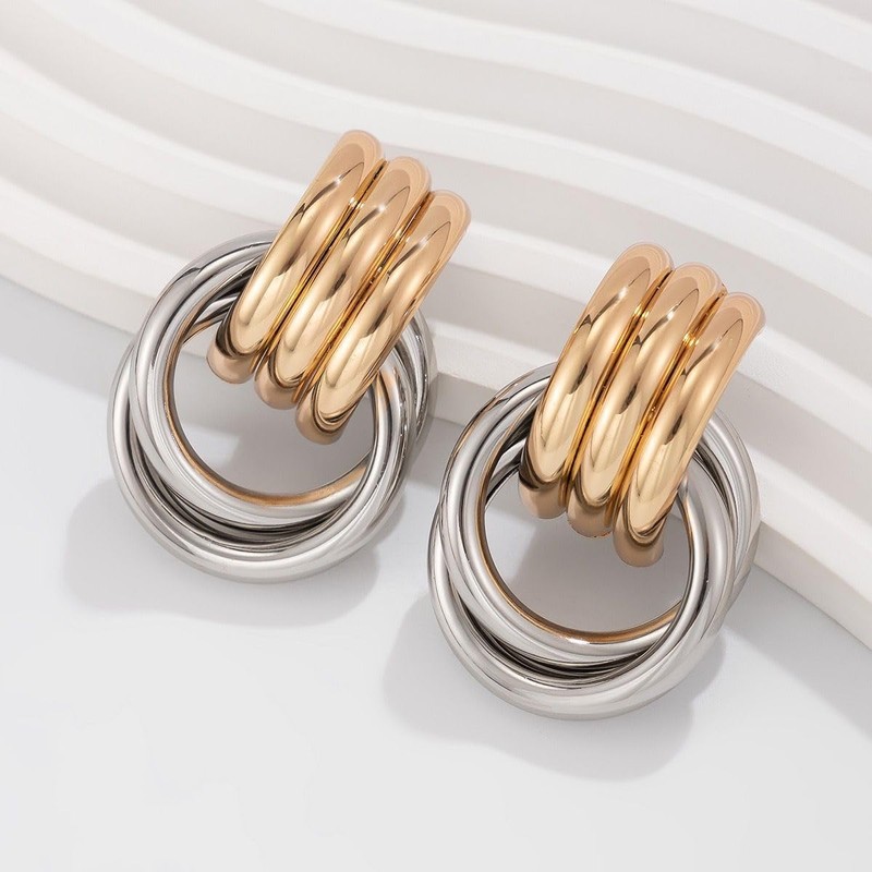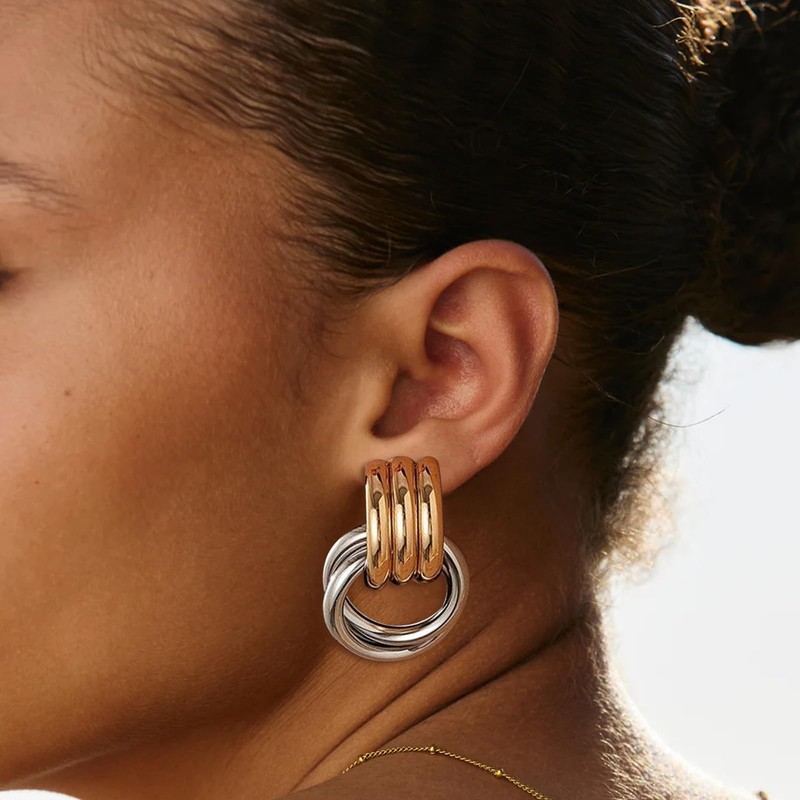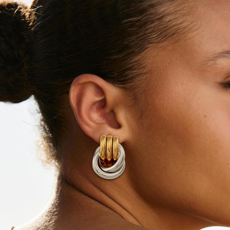 - Chunky Gold Earrings: These earrings are vintage-inspired, geometric shaped clasp design, simple but not simple, easy to show your personality charm