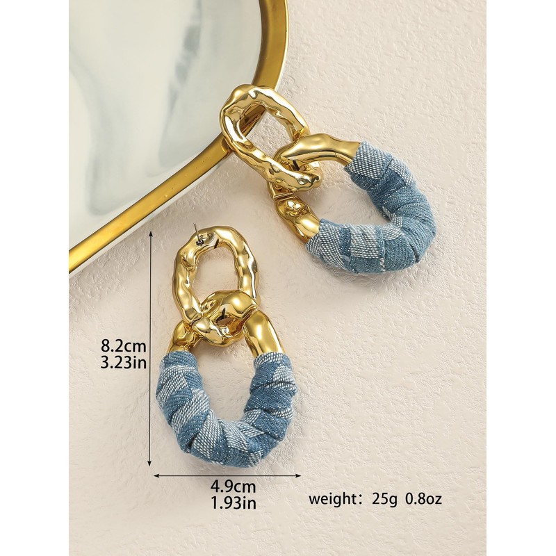 Chunky Gold Statement Earrings for Women Large Irregular Geometric Drop Dangle Earrings Exaggerated Thick Wrap Jewelry(Blue)