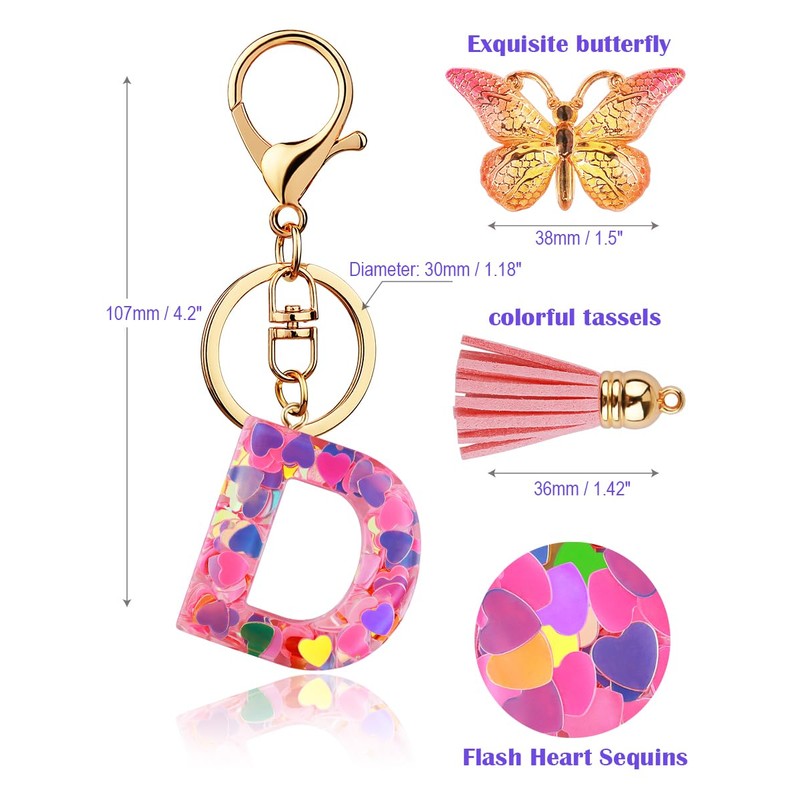 - High quality keychain: The cute women initials keychain is made of resin material, equipped with a pink butterfly and tassel keychain, which has a comfortable touch and is hard and not easy to break. Butterfly car accessories key buckle bracelet accessories, personalized keychain is a great women car accessory.