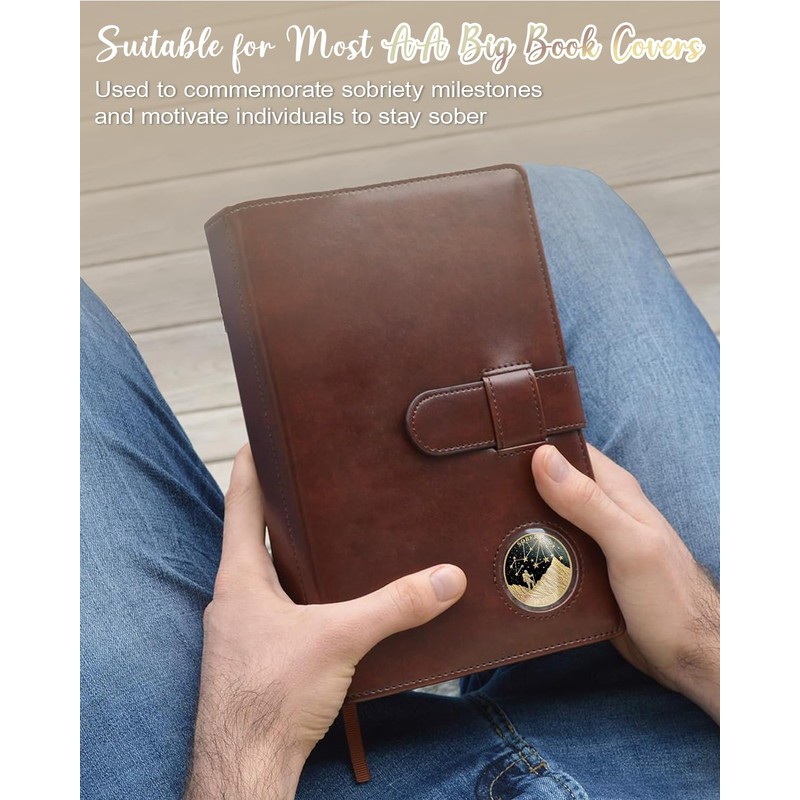- Premium Quality & Easy to Carry: Made from zinc alloy with antique bronze plating, our AA coins are about 1.37 inches in diameter and 0.08 inches thick—just the right size to slip into your AA big book cover, pocket, purse, or keychain. This lightweight sober chip serves as a constant reminder of how far you've come, providing strength and support in the face of temptation or stress. It pairs perfectly with AA books and recovery workbooks, supporting you every step of the way on your journey