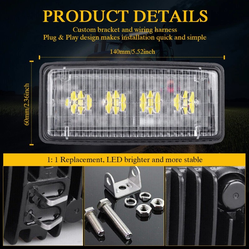 Lights RE306510 Small Rectangular LED Headlight Compatible With/Replacement For John Deere 4040, 4050, 4055, 4240, 4250, 4255, 4440, 4450, 4455, 4555, 4560, 4640, 4650, 4755 Flood Off-Road Light