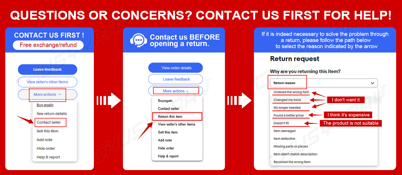 Please contact us before returning any item.