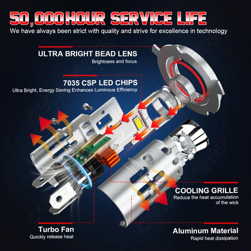 - Lumens: 6500LM/high beam,4500LM/low beam
