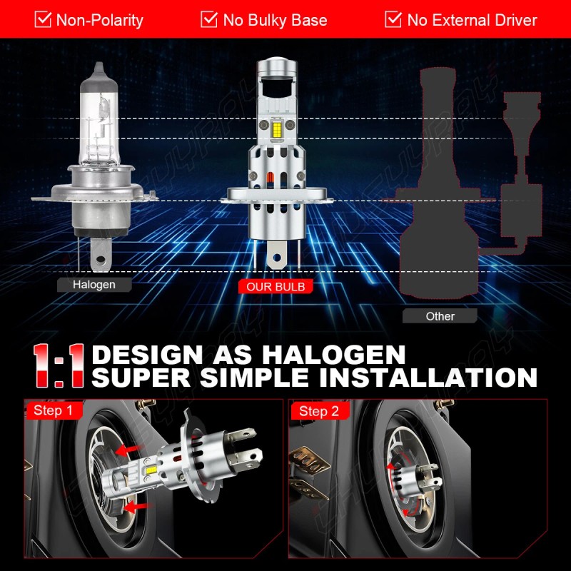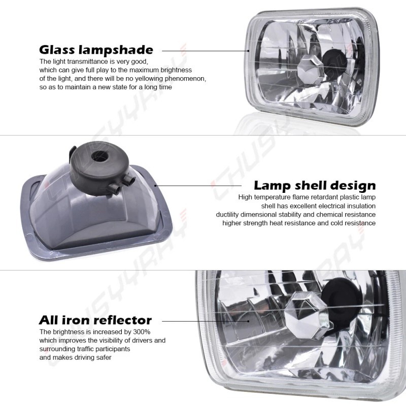 - Items Included: 2pcs 7x6" headights + 2Pcs H4 LED bulbs