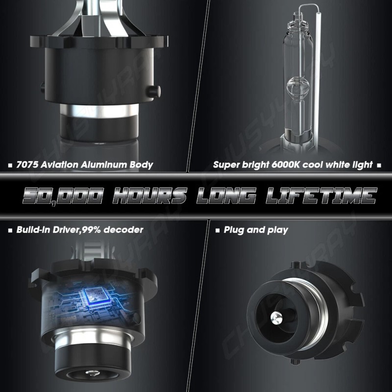 CHUSYYRAY D2S D2R HID Headlight Kit Bulbs 35W 5000LM 6000K White HID Conversion Lamp