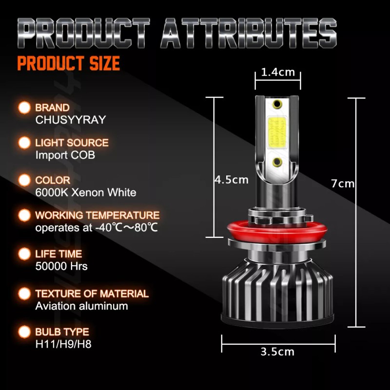 100W @ 4000LM Each Bulb, Total 7200W @ 8000LM Per Pair, 5 times brighter than halogen lights