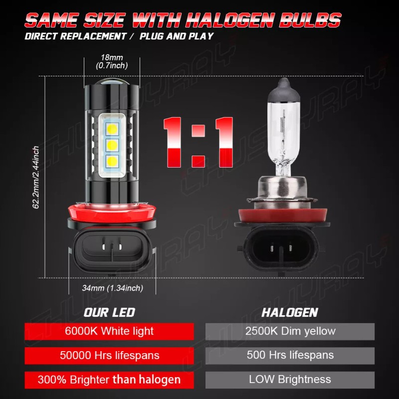 One Pair of 6000K super white H11 LED HID fog light driving bulbs