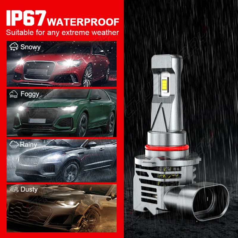 【Advanced and Ingenious Design】-No plastic plug, won't detach from the plug or get loose compared to other 9005 9006 9145 bulbs. Ensure CHUSYYRAY 9005 9006 9145 bulbs more reliable and durable. -Fan design, no worry about the fan noise or fan’s out issuse. Plus IP67 feature, well avoid the dirt, wet inhale in driving. Those 9005 9006 9145 Bubls will work perfectly on most severe weather
