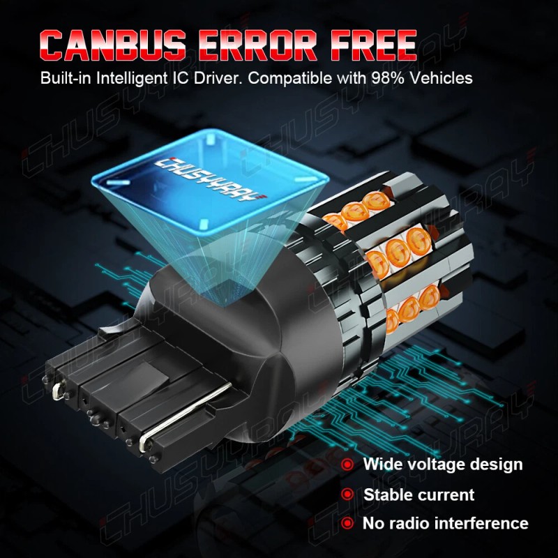 CHUSYYRAY No Hyper Flash 7443 7444NA LED Turn Signal Parking Lights Bulbs +A