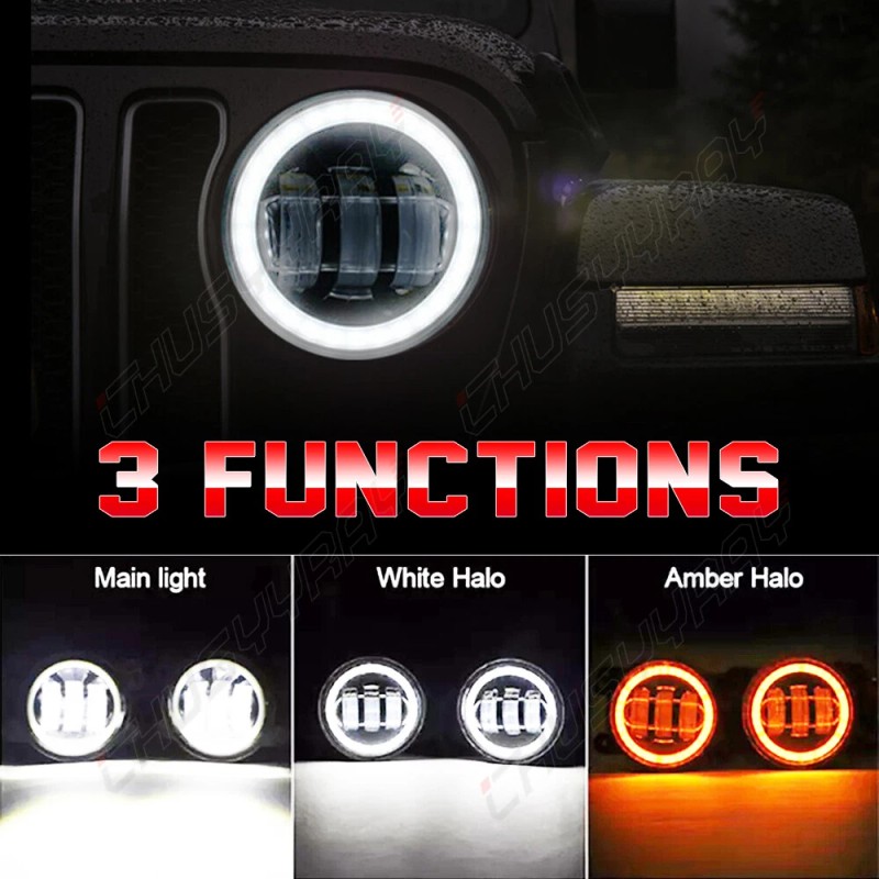CHUSYYRAY Pair 4Inch LED Fog Lights Front Bumper Driving Lamps FOR jeep Wrangler JK JL JT