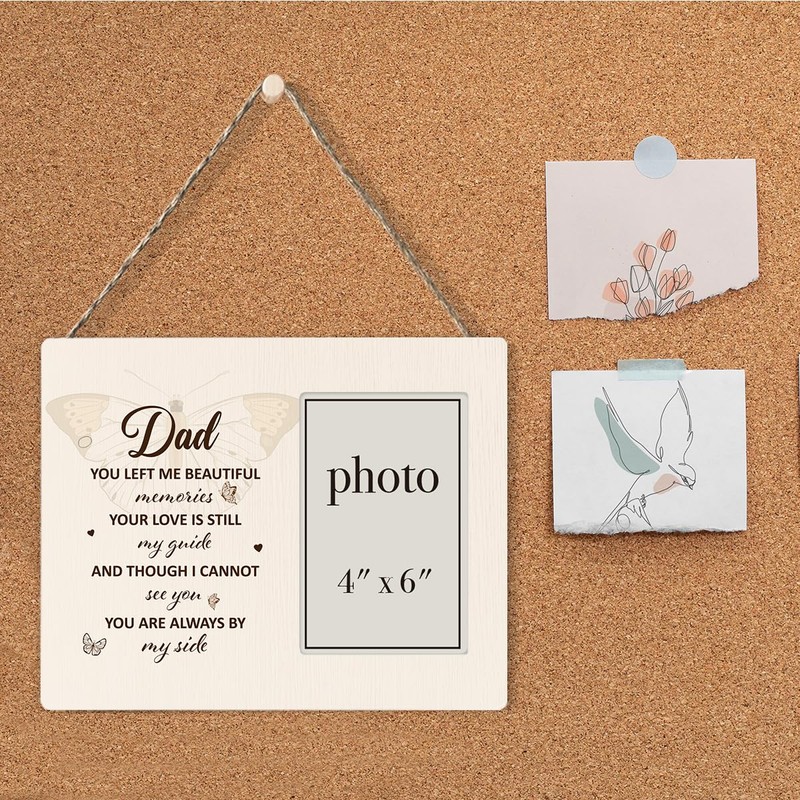 CIANMGD Memorial Gifts for Loss of Dad, In Memory of Dad Picture Frame, Remembrance Gifts for Loss of Father, Bereavement Gifts Wood Photo Frame, 4 x 6 Inch Photo