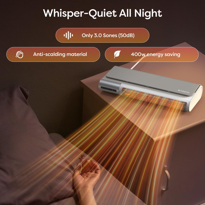 - Quiet Operation for Undisturbed Use: Designed with a DC motor and aerodynamic fan blades to minimize airflow noise, this heater operates at less than 45dB—quieter than a soft conversation. Whether you’re sleeping in the bedroom, focusing in the office, or keeping a nursery warm, its low hum fades into the background, ensuring warmth never comes at the cost of peace and quiet. Perfect for noise-sensitive environments where undisturbed comfort is key.