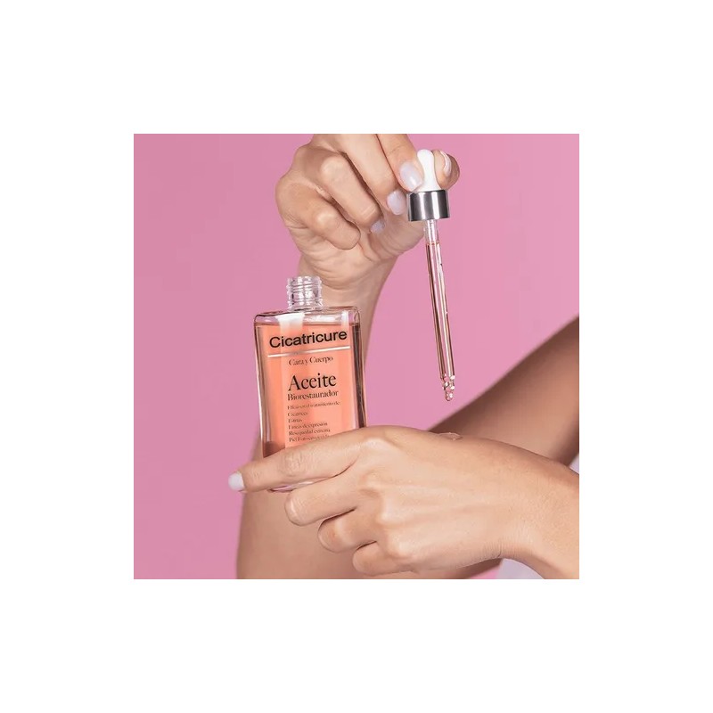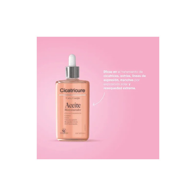 El Cicatricure Aceite Biorestaurador de 60 ml está formulado para tratar la apariencia de cicatrices, estrías, manchas y signos del envejecimiento. Con ingredientes hidratantes y regeneradores, este aceite penetra profundamente en la piel, favoreciendo su restauración y mejorando notablemente su textura. Es apto para todo tipo de piel y puede aplicarse en rostro y cuerpo, ideal para una rutina diaria de cuidado intensivo.