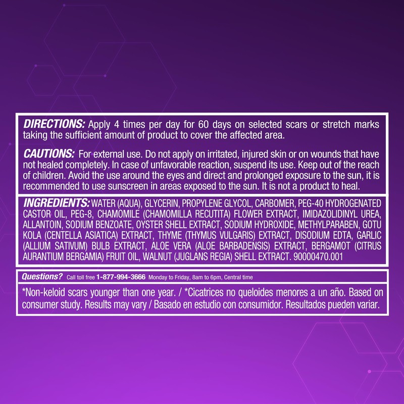 - CLINICALLY PROVEN RESULTS IN 2 WEEKS : Experience visible improvement in surgical scars, acne scars, and stretch marks in as little as 2 weeks. Results may vary. Follow product directions