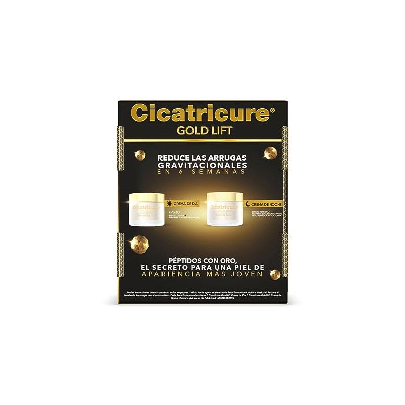 Cicatricure - Cicatricure Crema Bundle: Gold Lift Día y Noche; Resultados Visibles en 6 Semanas, Tratamiento Antiarrugas con Péptidos y Oro, Reafirma, Redefine Contorno Facial, con FPS 30,2 Tarros de 50 g
