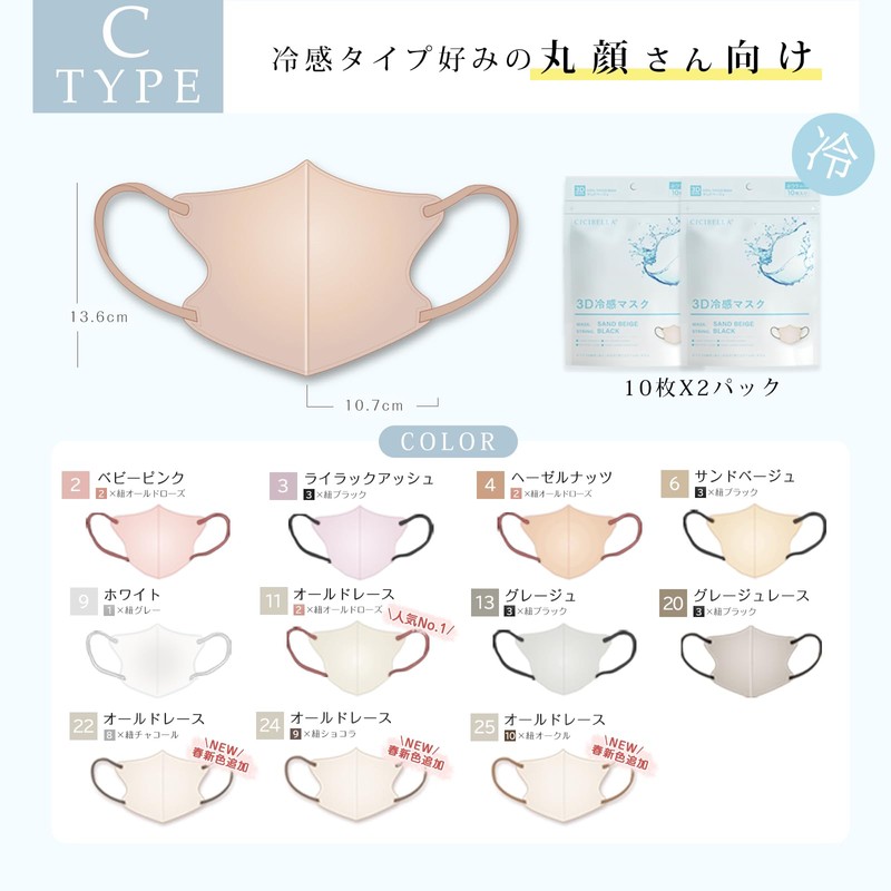 - 【製品仕様】CICIBELLA 3D立体マスク