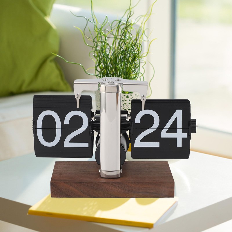 ciciglow Flip Table Clock, 24-Hour Retro Flip Down Desk Clock with Wooden Base, Automatic Mechanical Flip Knob, Time Setting Clock for Home Office