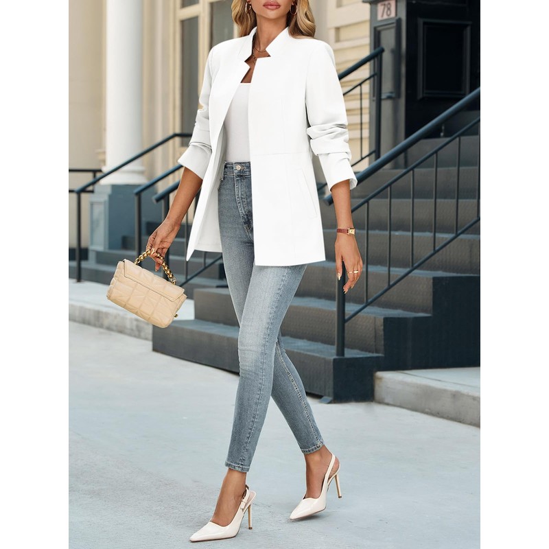 Cicy Bell Womens Business Casual Blazer Long Sleeve Open Front Notch Stand Collar Blazer Work Office Jacket Suit White