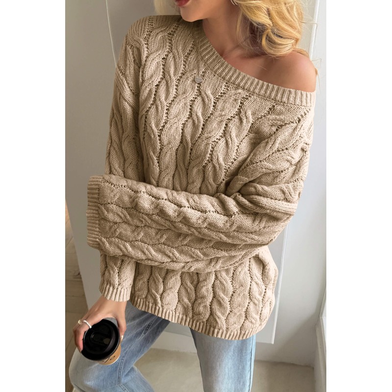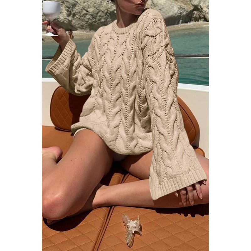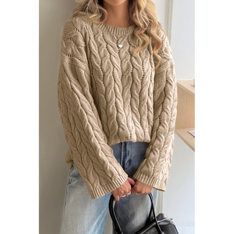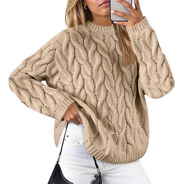Cicy Bell Womens Oversized Cable Knit Sweaters Long Sleeve Crewneck Chunky Loose Fit Pullover Tops Khaki