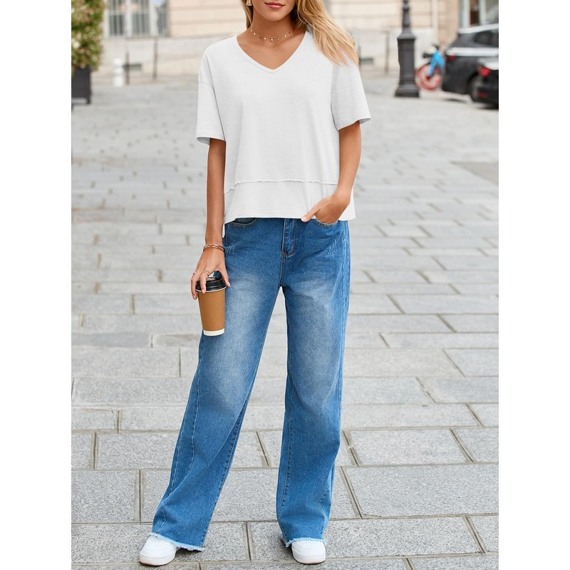 Cicy Bell Womens Summer V Neck T Shirts Casual Short Sleeve Flowy Tops Cute Loose Fit Basic Tees White