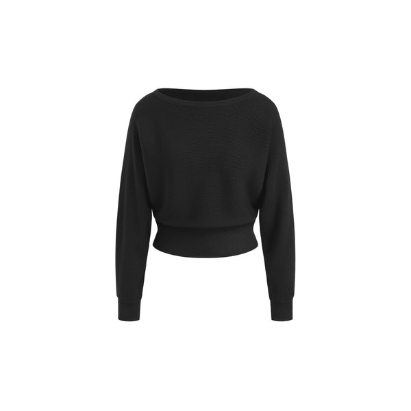 CIDER Asymmetrical Neck Solid Crop Long Sleeve Top: Black, XL