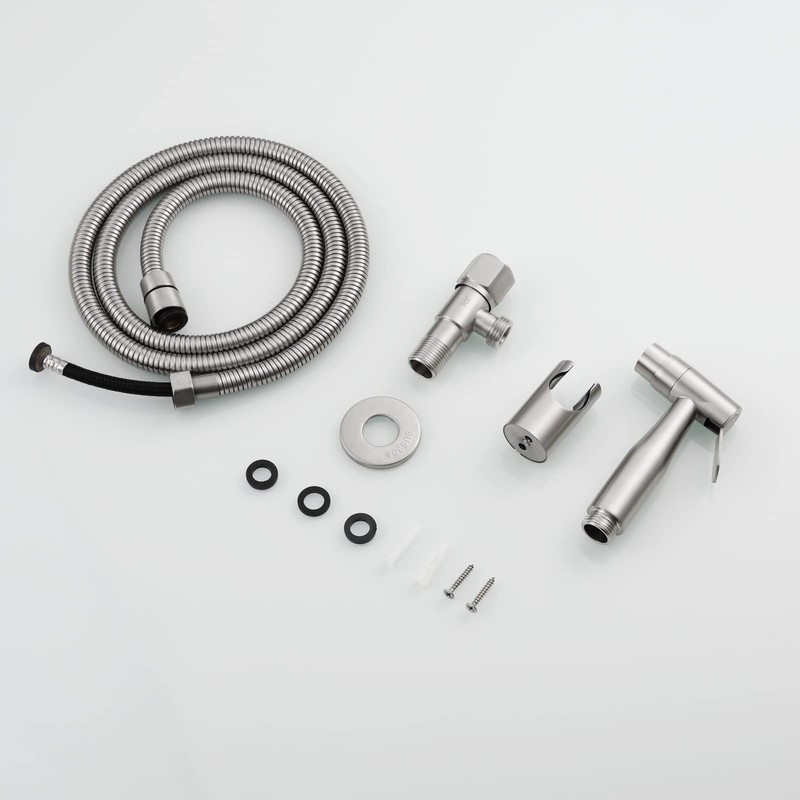- Enthält Shattaf, Duschschlauch, Eckventil (Sockel) & Hakenhalter zum Komplettset für 10 Min. Montage