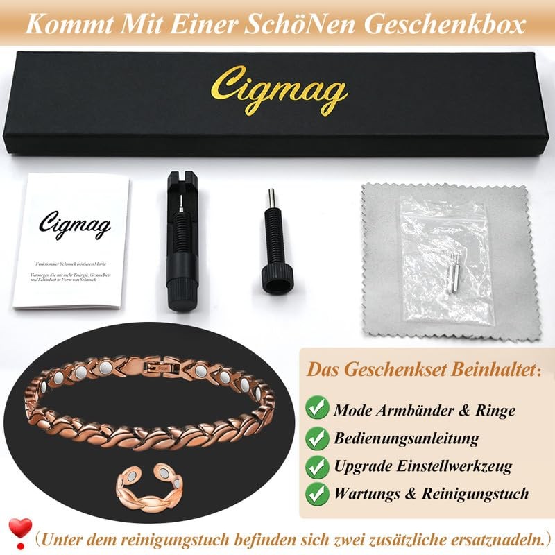 Cigmag Lymphatic Drainage Copper for Women Ultra Strong Magnets 99% Pure Copper Adjustable with Removal Tool and Gift Box (Fish Tail)