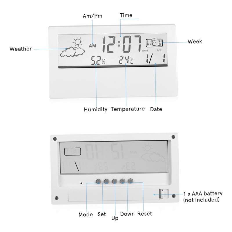 -Battery:1 x AAA battery(not included) Alarm Clock