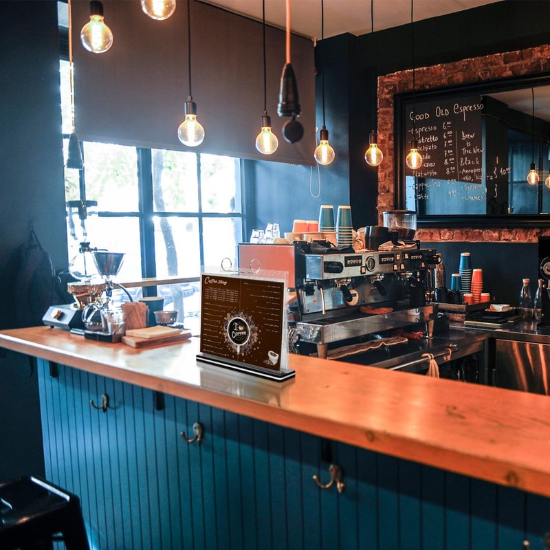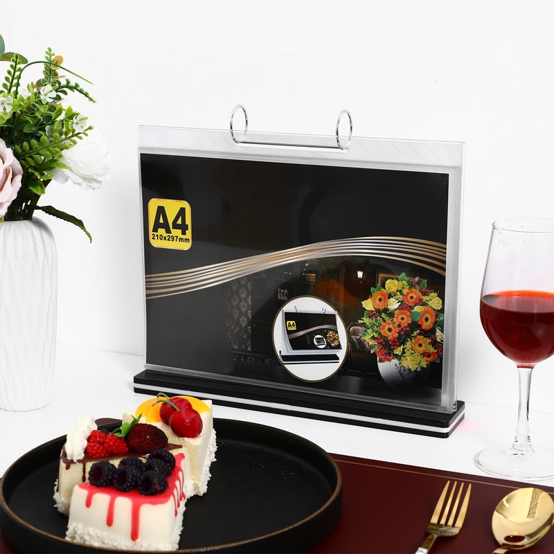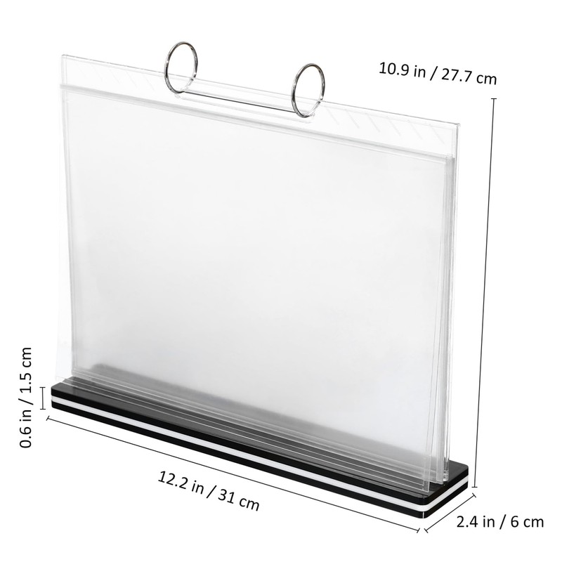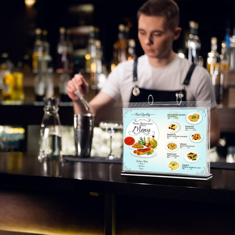 ed with durability in mind, our display stand is both sturdy and stable, making it a lasting addition to any establishment. Its clear design allows for easy visibility of your materials, while its horizontal flip feature makes it easy to switch out menus as needed.