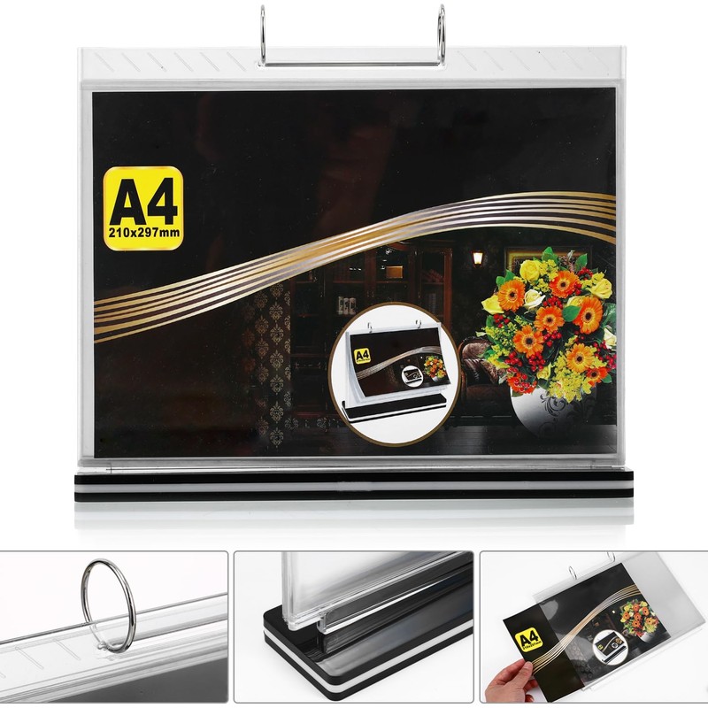 - Smooth updates: The flip sign holder is accompanied by dual rings, facilitating swift and effortless document swaps, ensuring that your presentation remains current and up-to-date.
