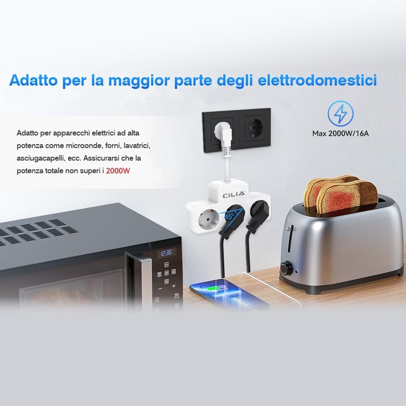 CILIA Multipurpose Power Socket 2000W 10/16A AC 230V White and Black Suitable for Family and Offices (White)