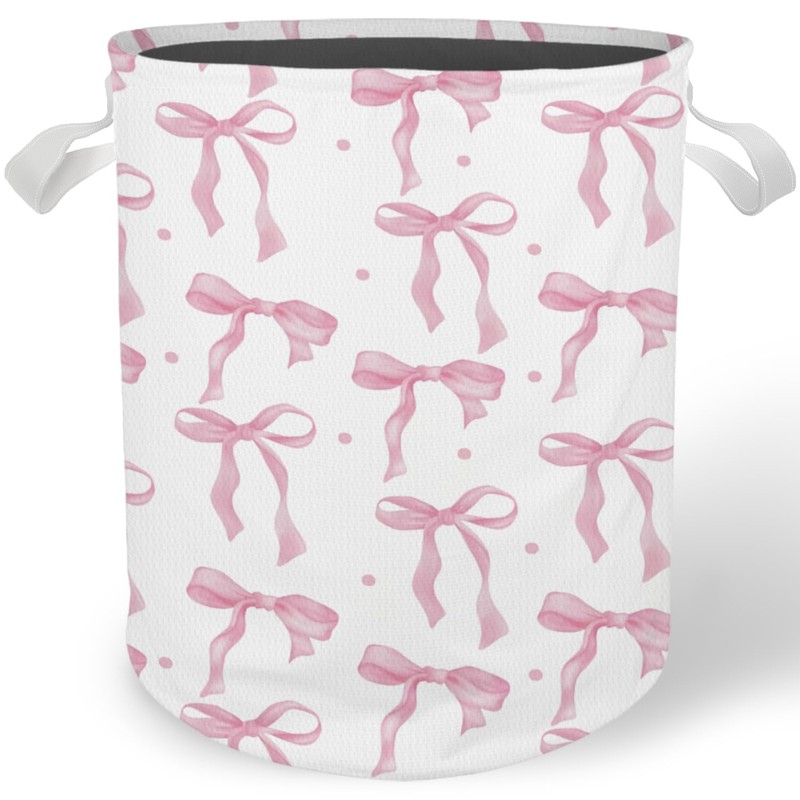Cilrii Pink Bow Girl Laundry Basket Hamper, Toybox for Girls, Coquette Preppy Bow Waterproof Collapsible Storage Bin Organizer for Bedroom Bathroom Girls Room Dorm Clothes Toys Books
