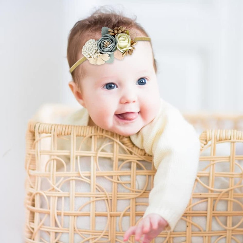 - HIGH QUALITY MATERIAL - Each flower is made of high quality fabric with pretty ornaments such as artificial pearls and rhinestones, then attached to extremely soft and elastic bare nylon ribbon. So these flower headbands are super stretchy, soft and comfortable for delicate baby to wear.